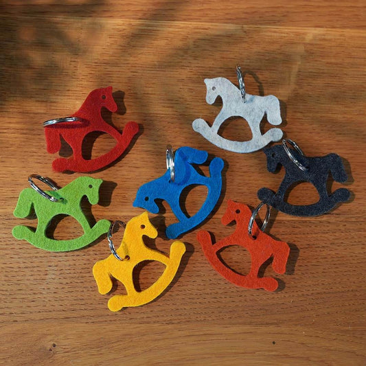Schlüsselanhänger Schaukelpferd aus 5 mm Wollfilz in verschiedenen Farben