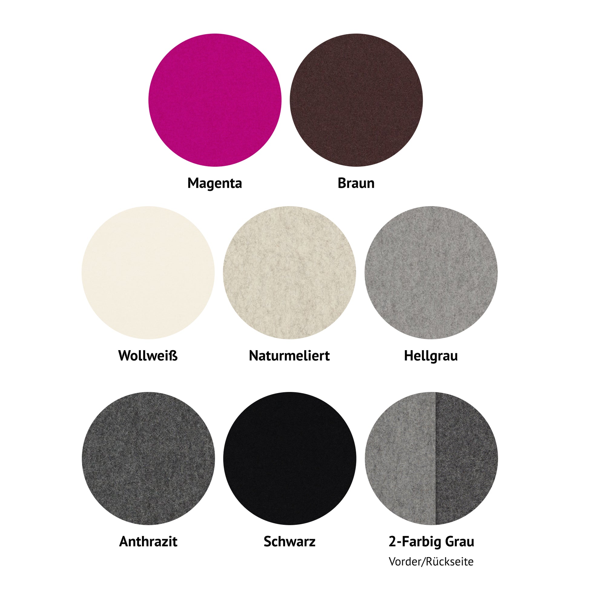 Wollfilz ist ein Naturprodukt, es können leichte Farbabweichungen in der Filzproduktion entstehen, wenn diese neu produziert wird.